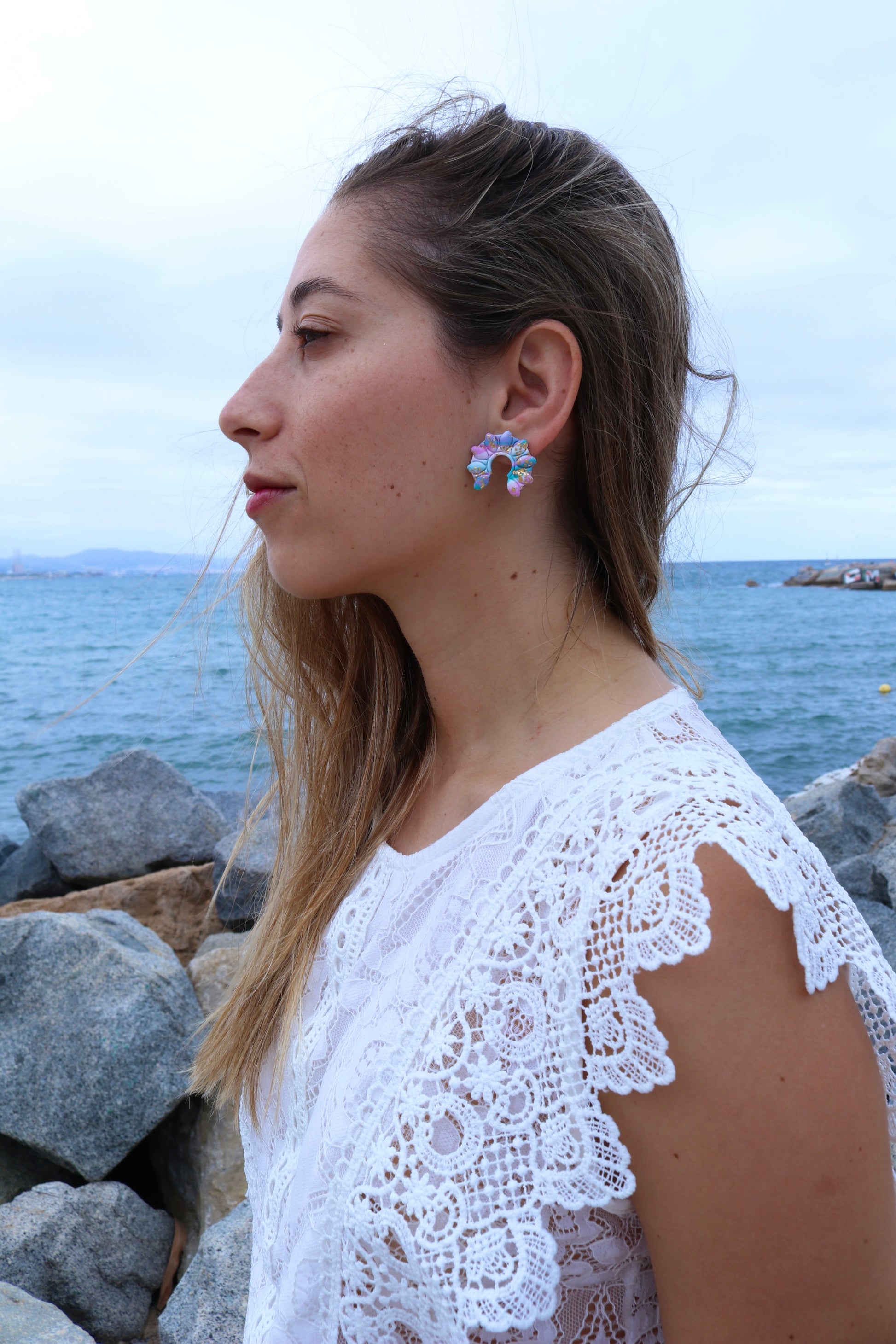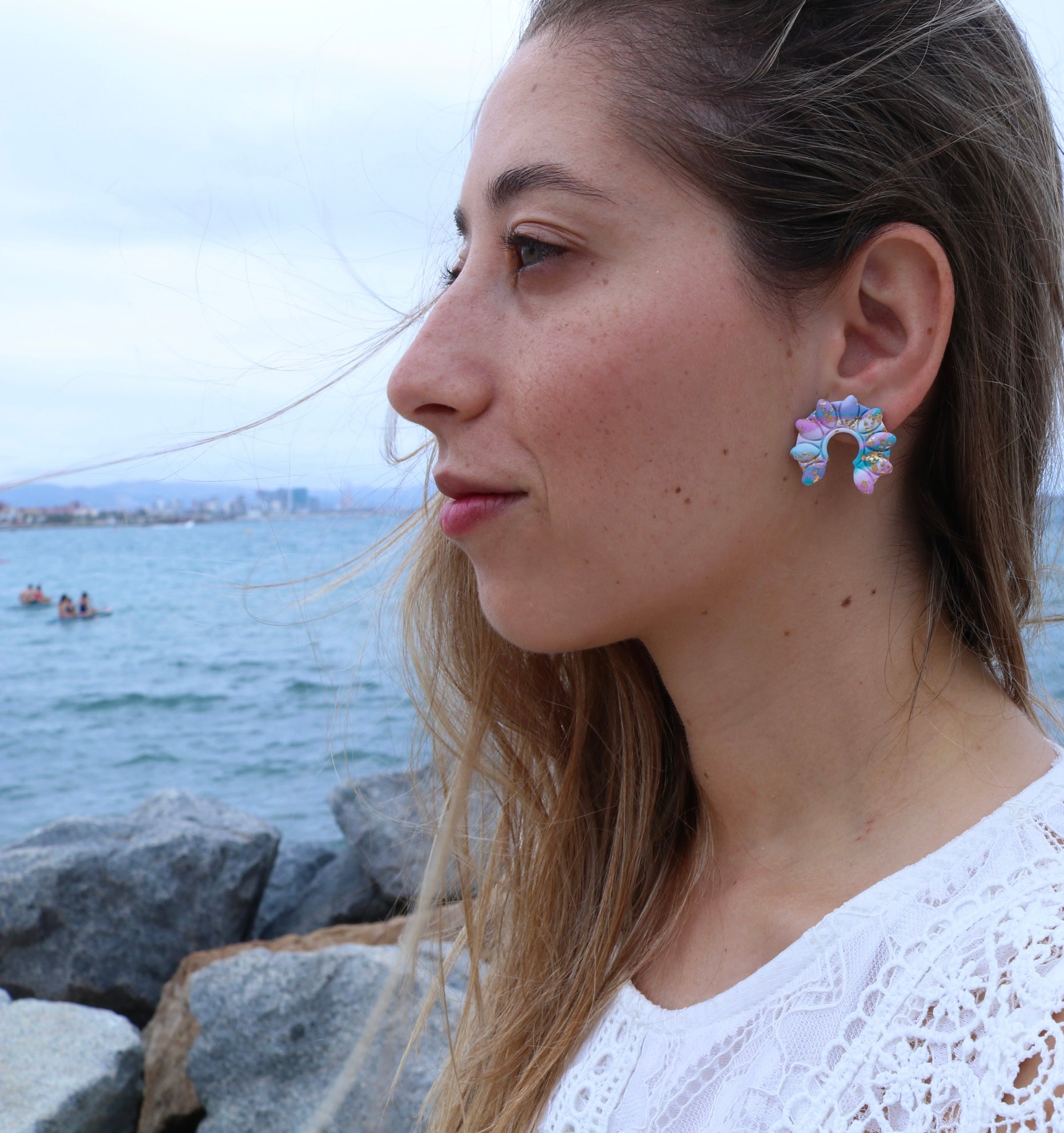 Pendientes hechos totalmente a mano con arcilla polymerica, amásamos, damos forma, damos textura, hornéanos, lijamos, pulimos, abrimos huecos y armamos, todo hecho con mucho amor en la colorida Barcelona ❤️
