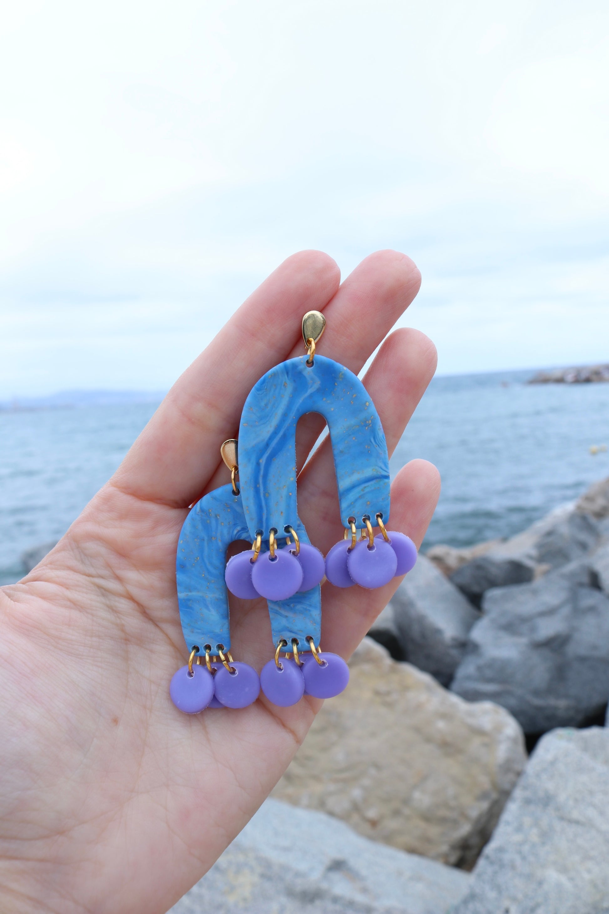 Pendientes hechos totalmente a mano con arcilla polymerica, amásamos, damos forma, damos textura, hornéanos, lijamos, pulimos, abrimos huecos y armamos, todo hecho con mucho amor en la colorida Barcelona ❤️