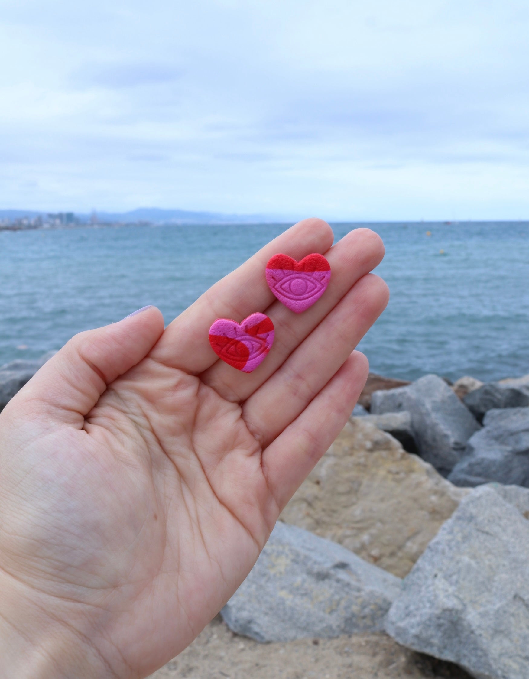 Pendientes hechos totalmente a mano con arcilla polymerica, amásamos, damos forma, damos textura, hornéanos, lijamos, pulimos, abrimos huecos y armamos, todo hecho con mucho amor en la colorida Barcelona ❤️