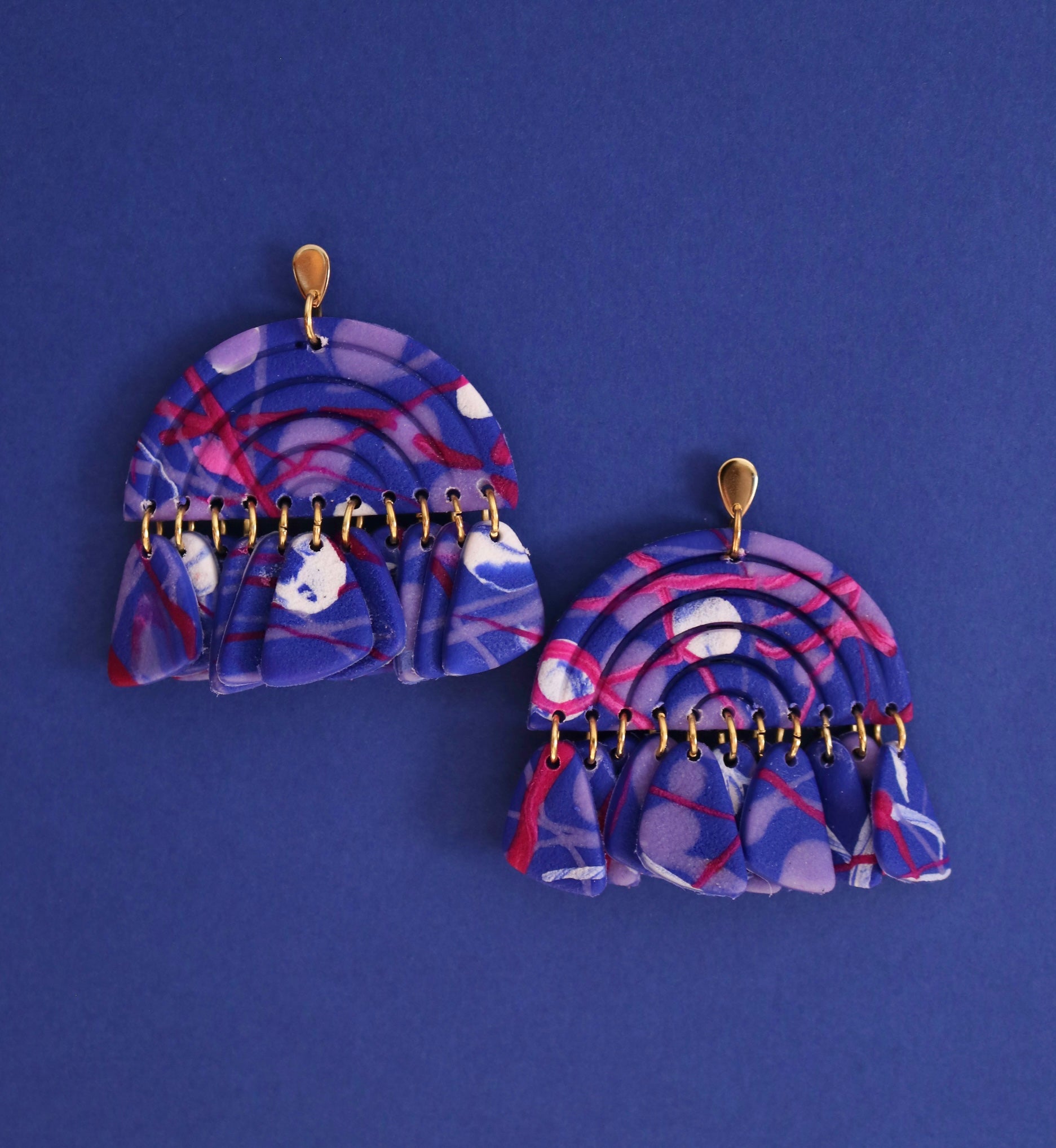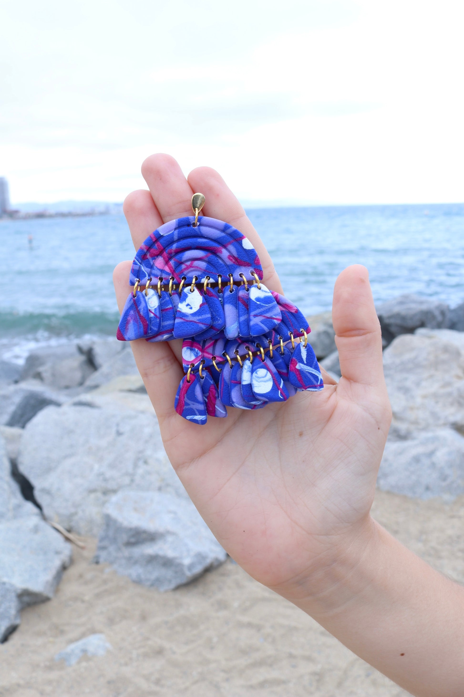 Pendientes hechos totalmente a mano con arcilla polymerica, amásamos, damos forma, damos textura, hornéanos, lijamos, pulimos, abrimos huecos y armamos, todo hecho con mucho amor en la colorida Barcelona ❤️