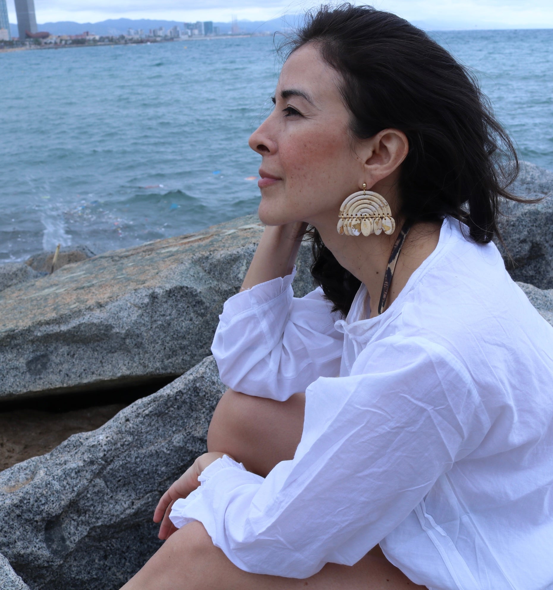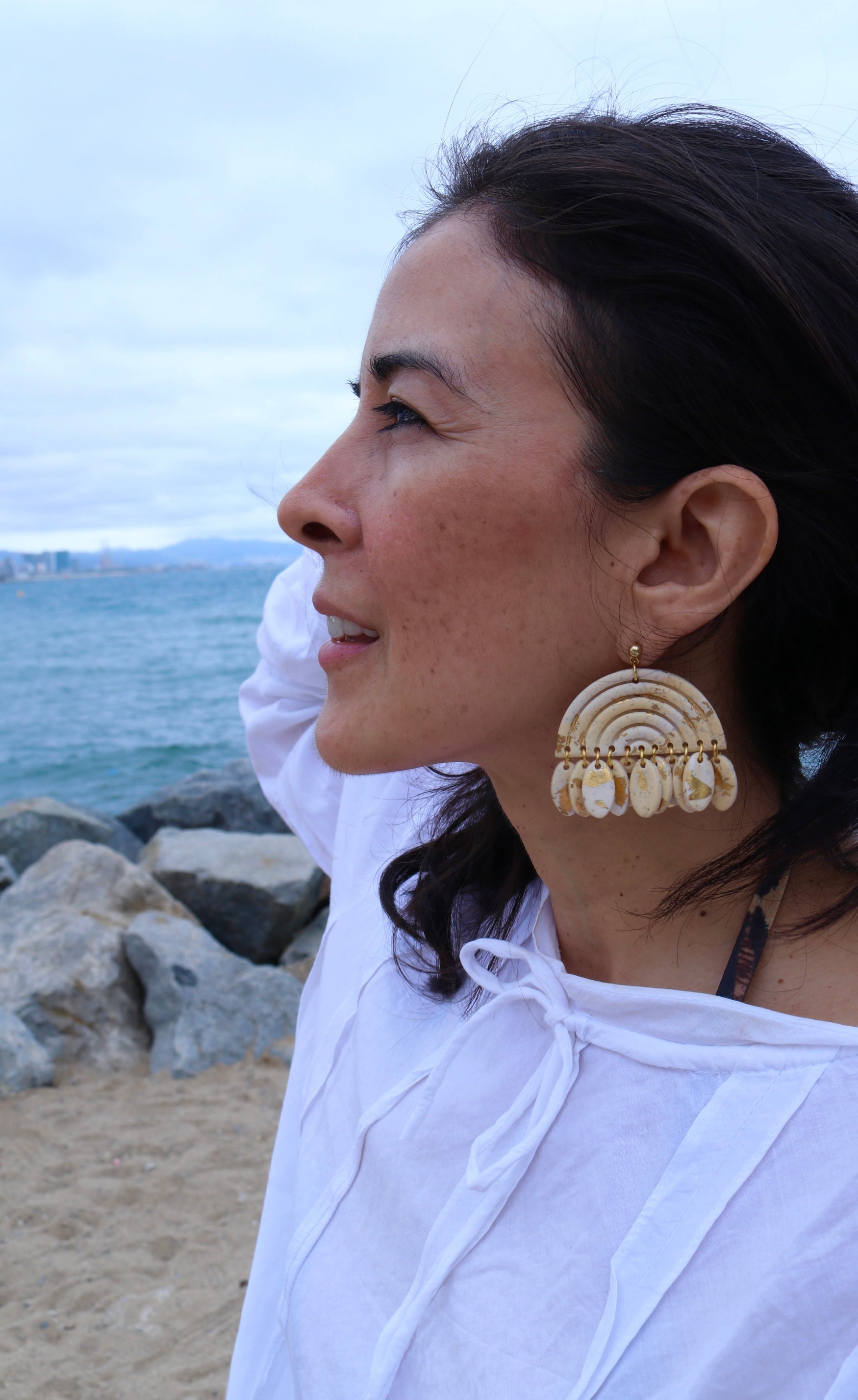 Este pendiente está inspirado en las medusas y sus movimientos perfectos que hacen una danza con el mar, mientras los rayos del sol en el mar hacen un reflejo dorado que nos cautiva.