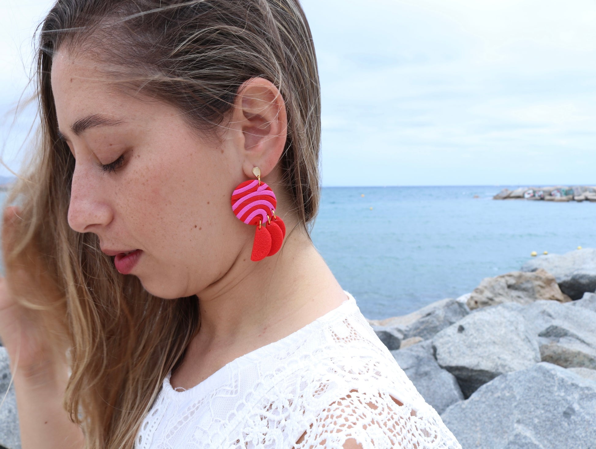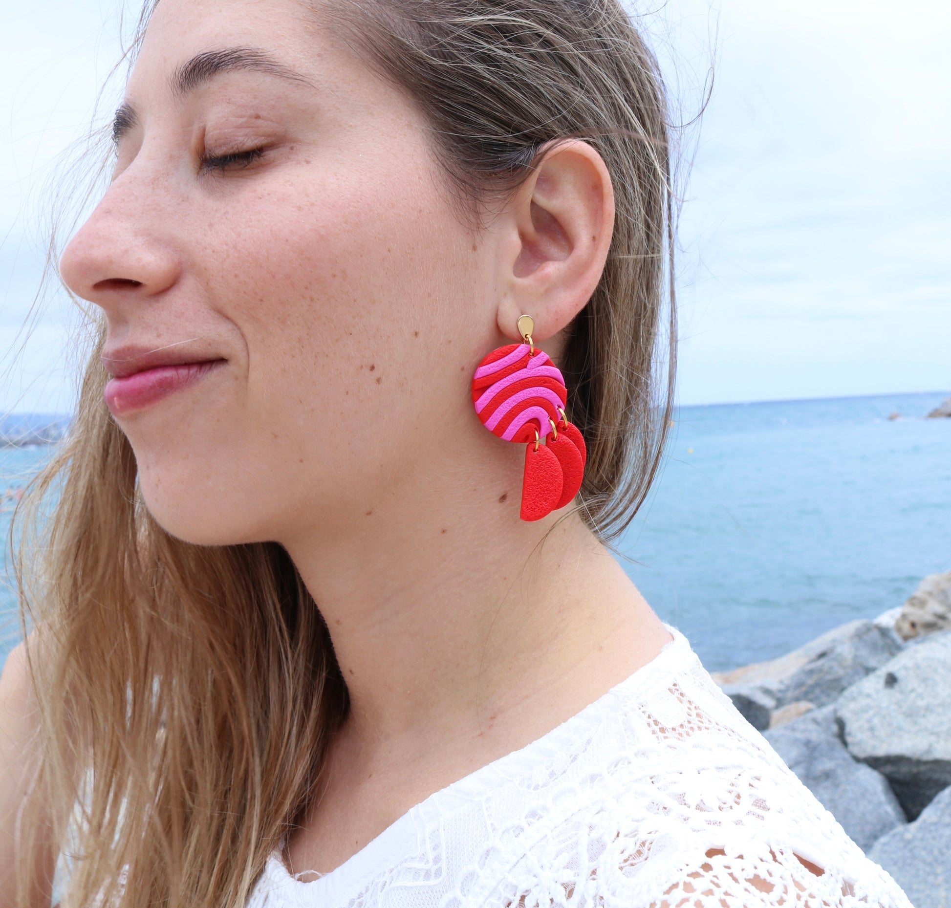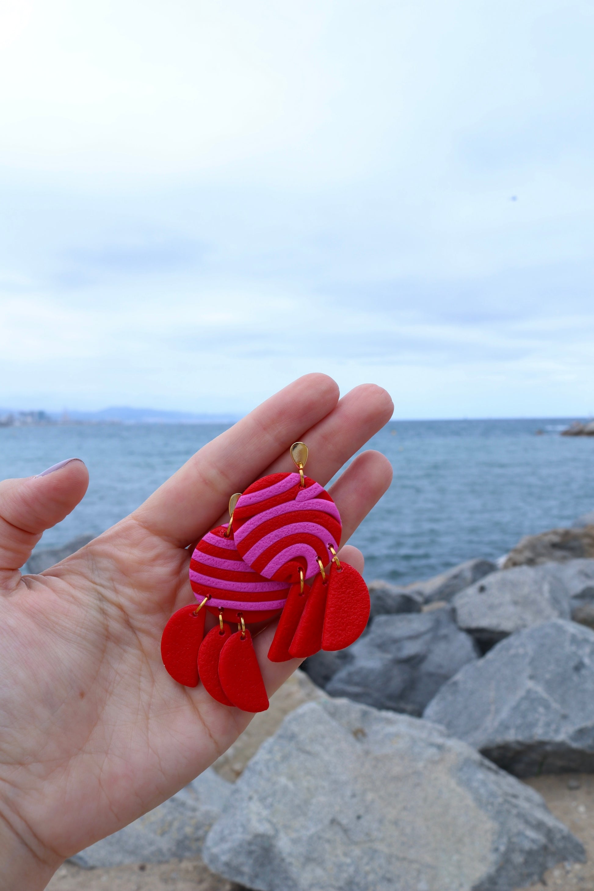 Pendientes hechos totalmente a mano con arcilla polymerica, amásamos, damos forma, damos textura, hornéanos, lijamos, pulimos, abrimos huecos y armamos, todo hecho con mucho amor en la colorida Barcelona ❤️