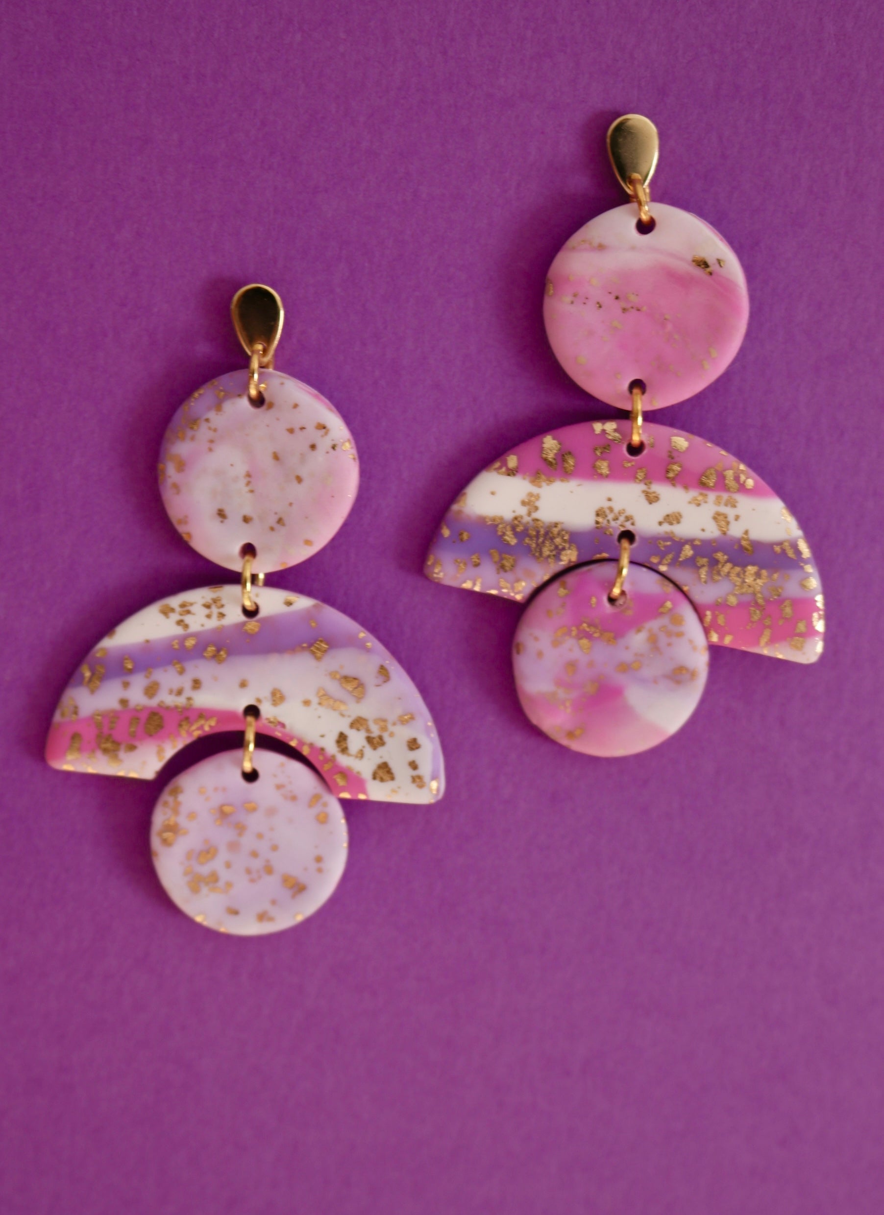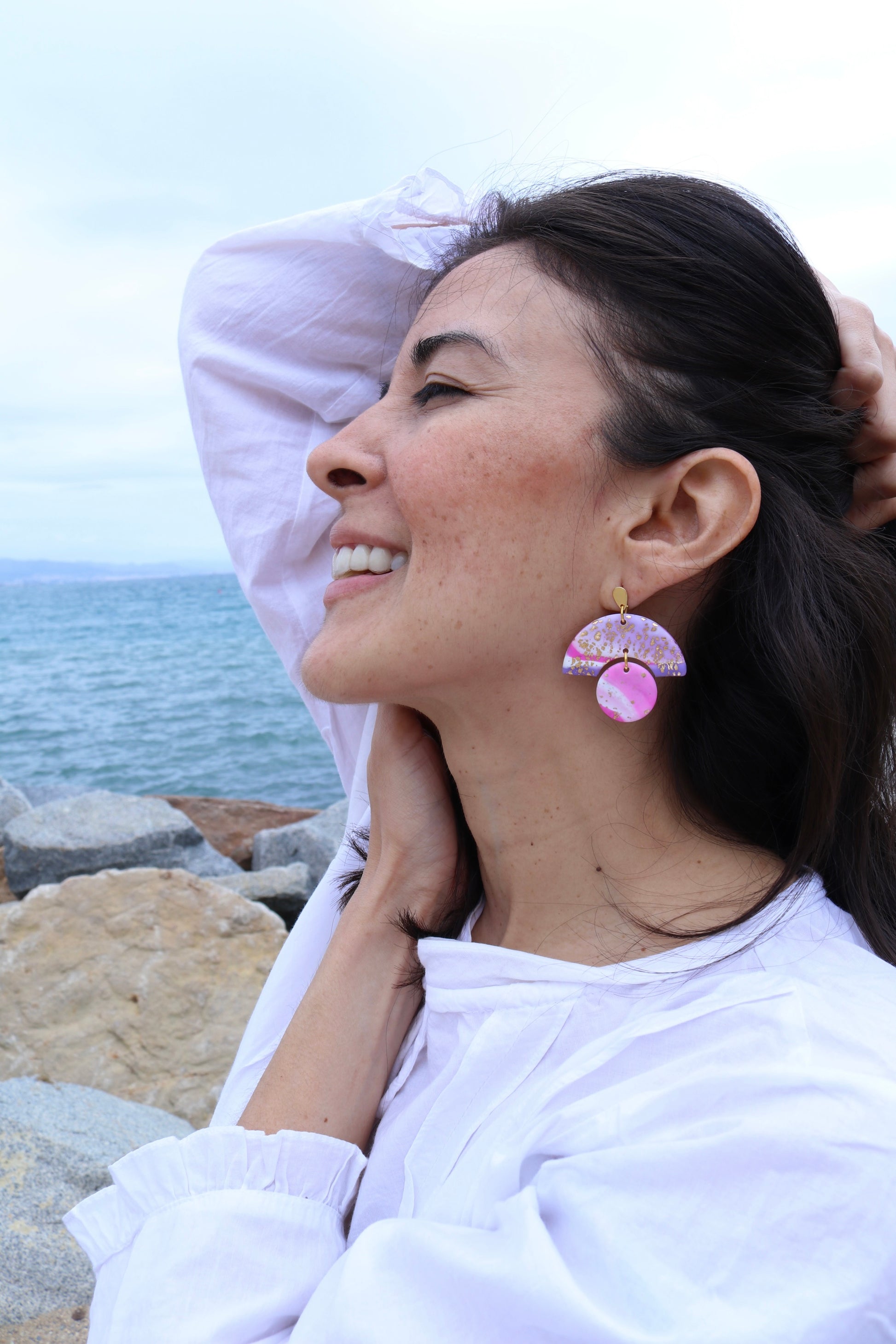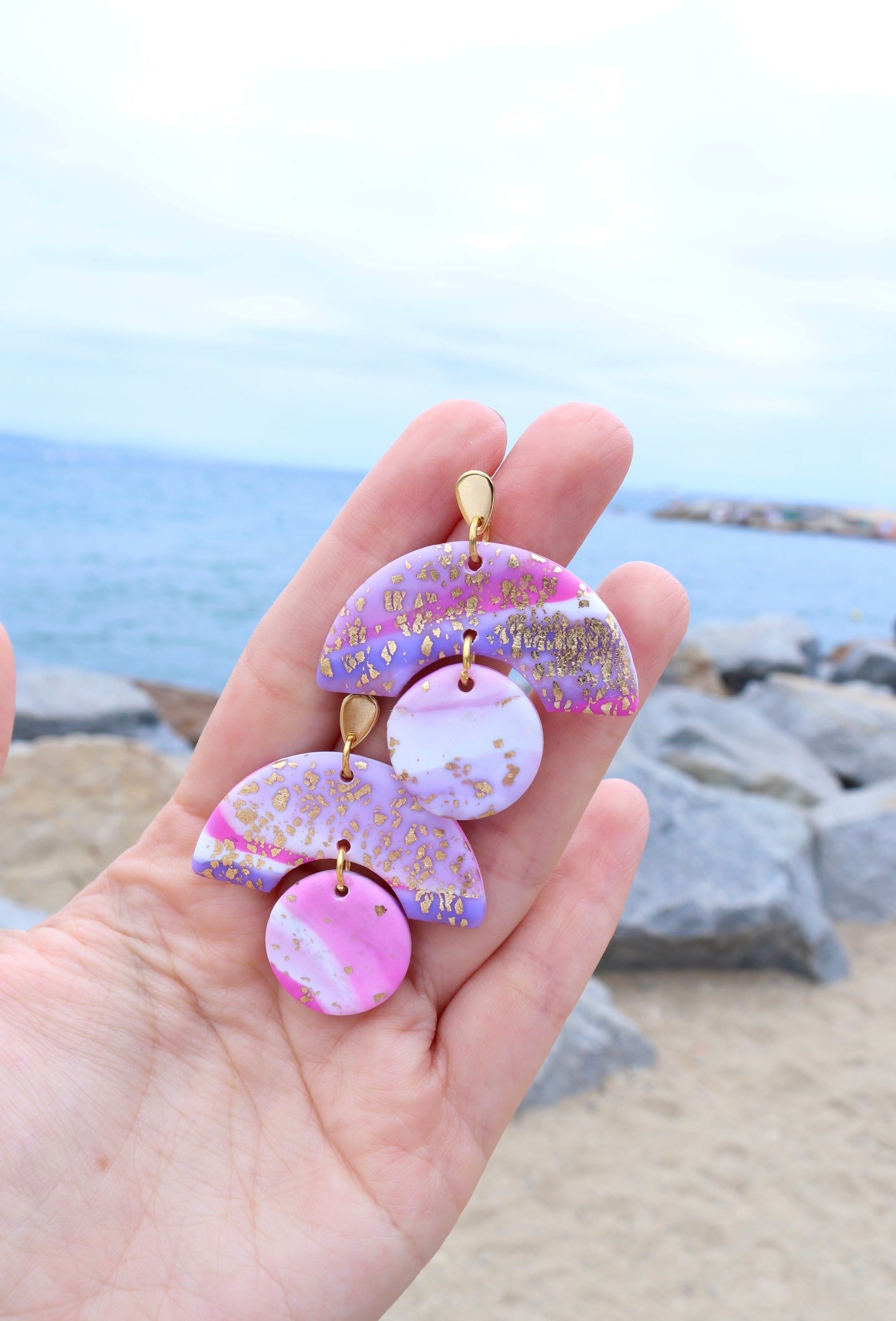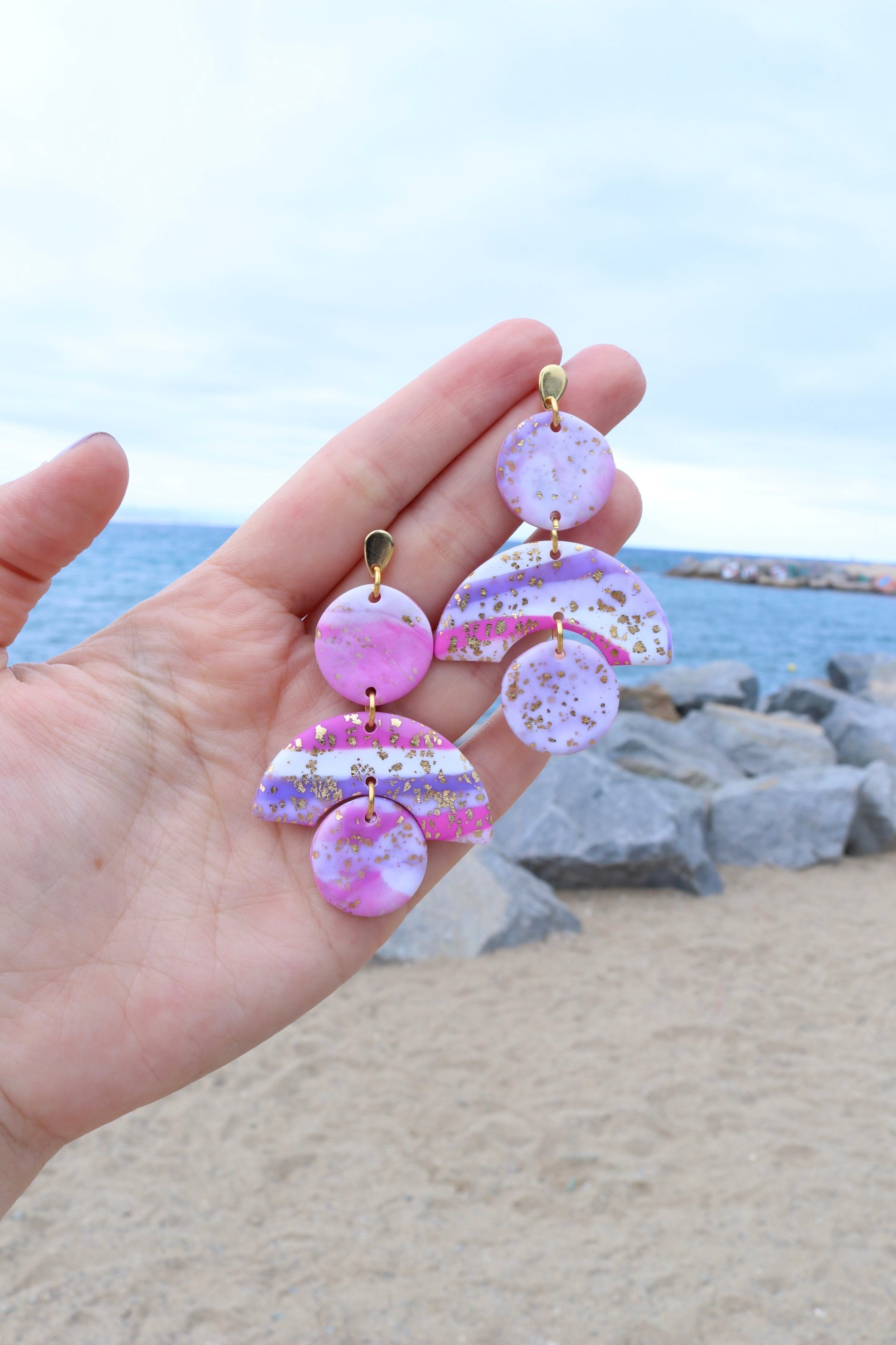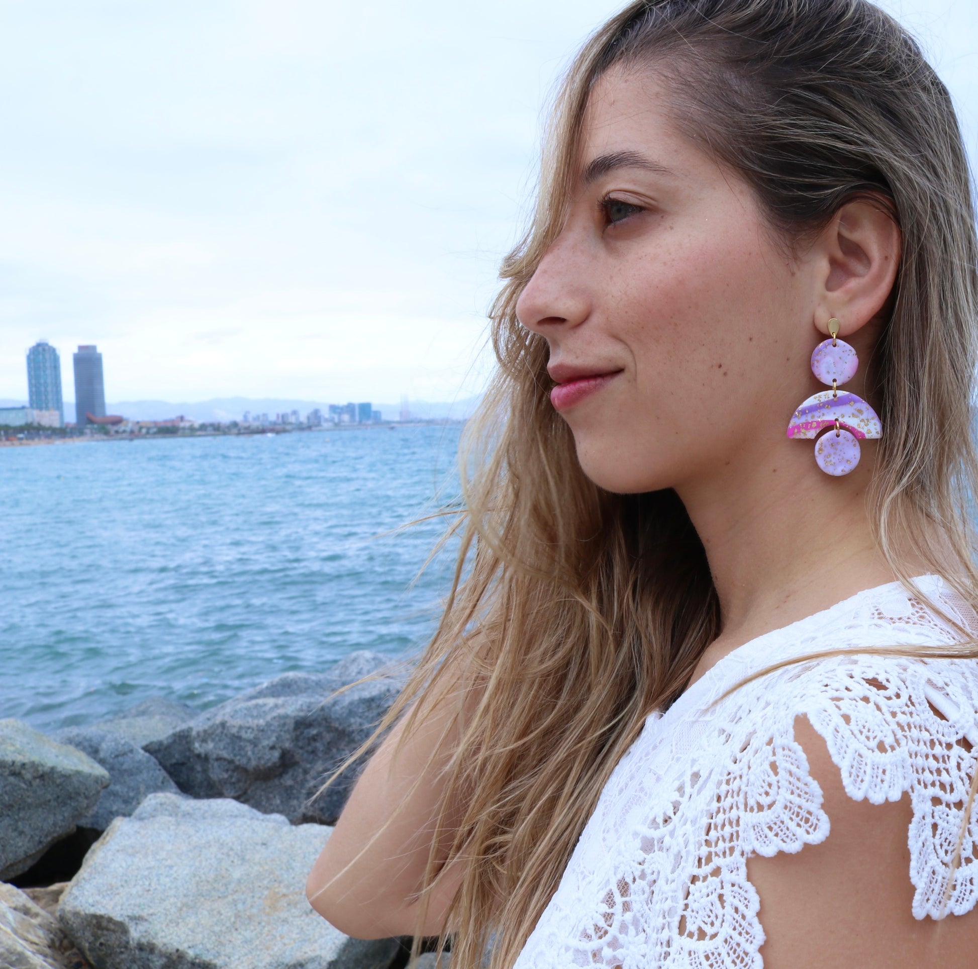 Pendientes hechos totalmente a mano con arcilla polymerica, amásamos, damos forma, damos textura, hornéanos, lijamos, pulimos, abrimos huecos y armamos, todo hecho con mucho amor en la colorida Barcelona ❤️