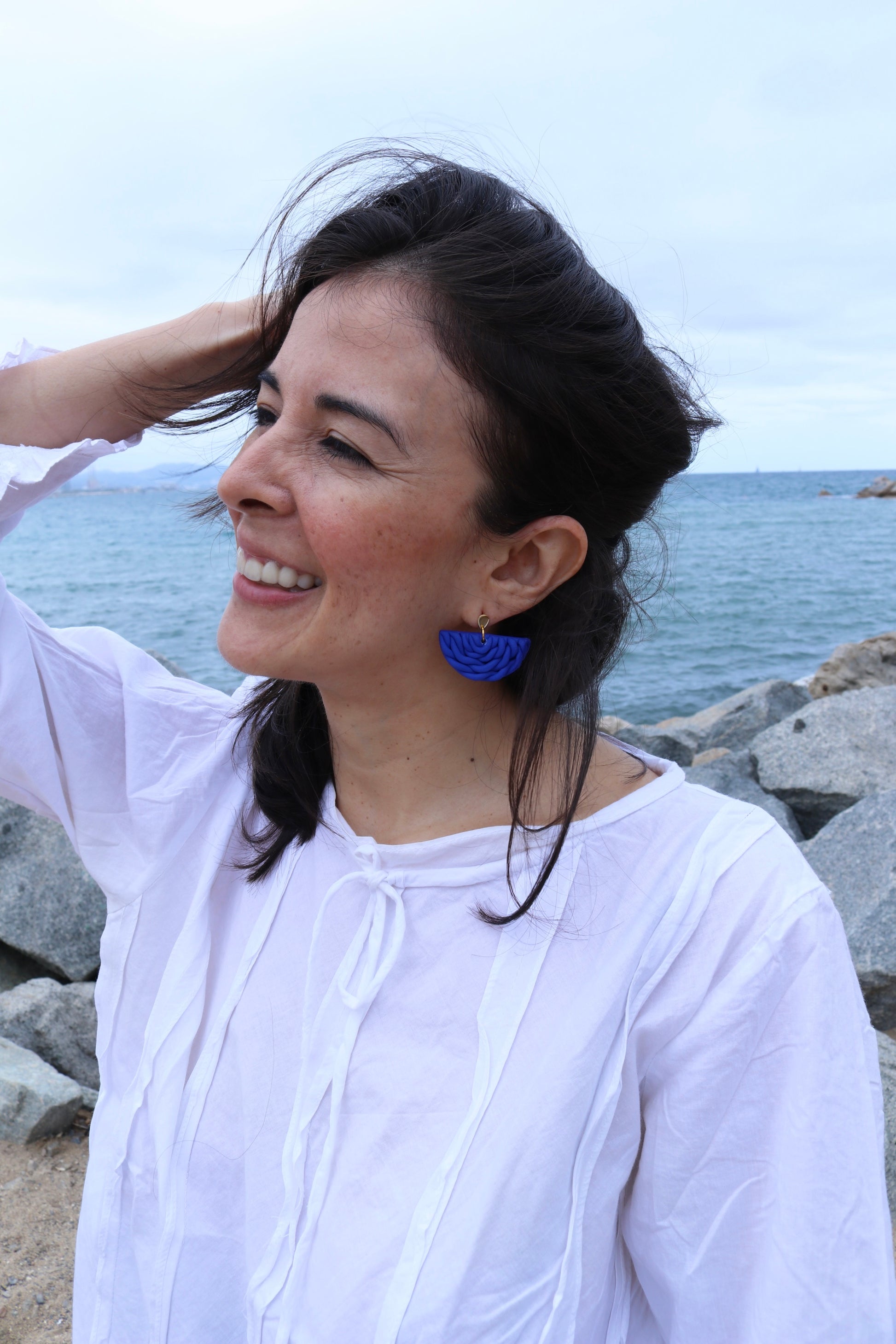 Este pendiente ya es un icónico en nuestra marca, salió por primera vez en beige y negro en la colección de invierno y fue un exitazo, por lo que teníamos que repetirlo pero esta vez en colores más vibrantes.